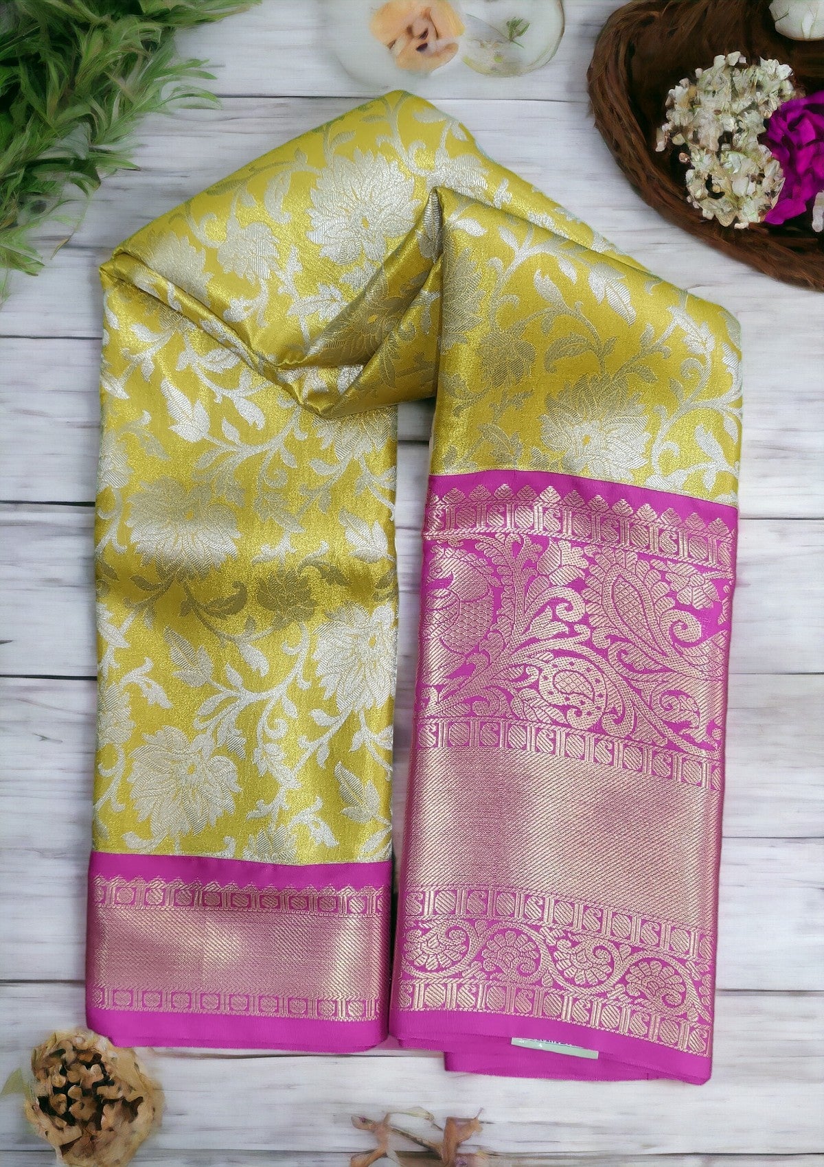 The Kadiyal Soft All Over Jal Design Silk Saree is a testament to timeless elegance and exquisite craftsmanship. Handcrafted with precision, this saree embodies the essence of traditional Indian attire while incorporating modern elements.
