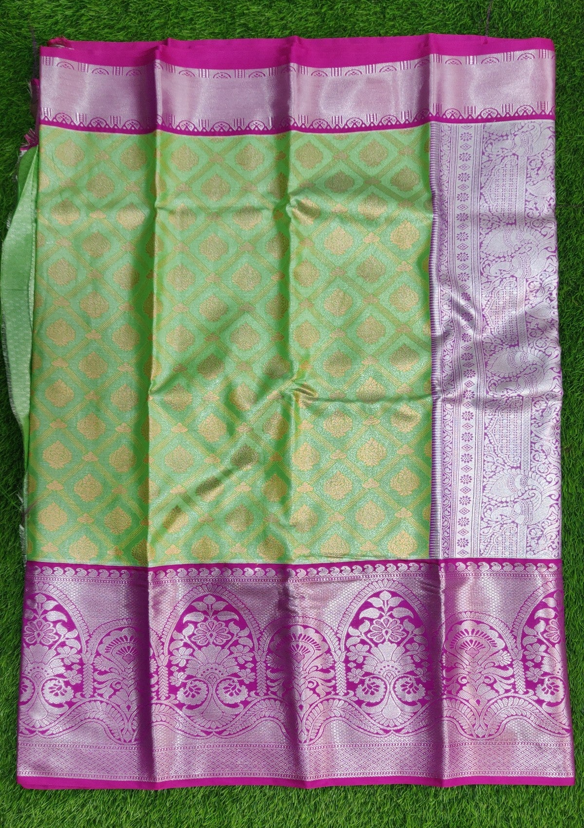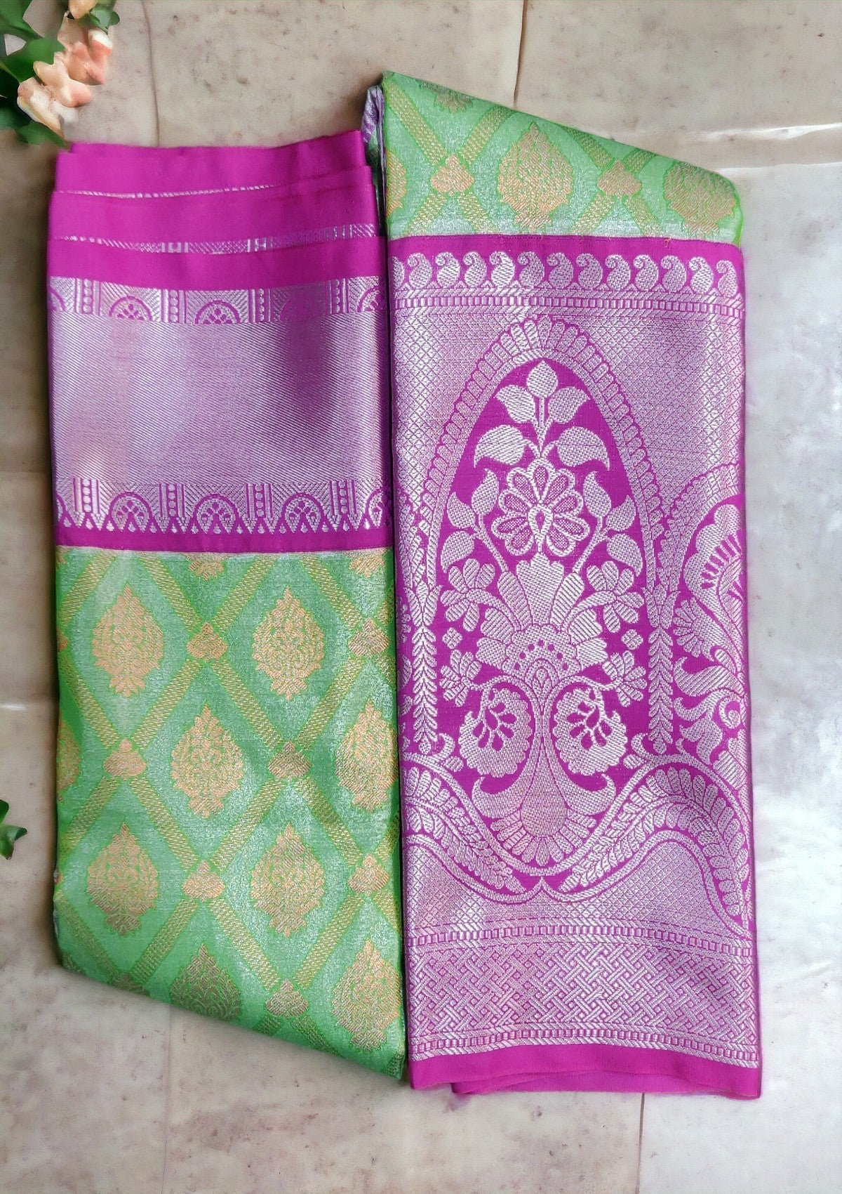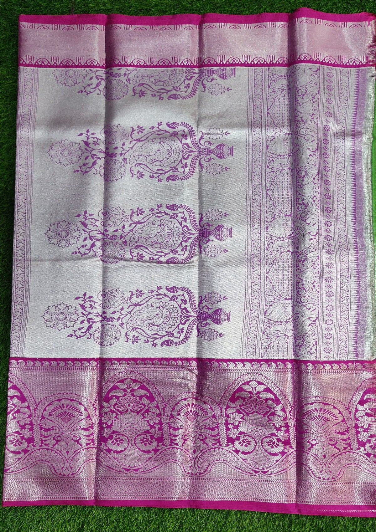 These sarees are crafted from high-quality silk fabric, known for its smooth texture and lustrous sheen. The silk used in Silver Kadiyal Pattu sarees is of superior quality, ensuring durability and elegance.
