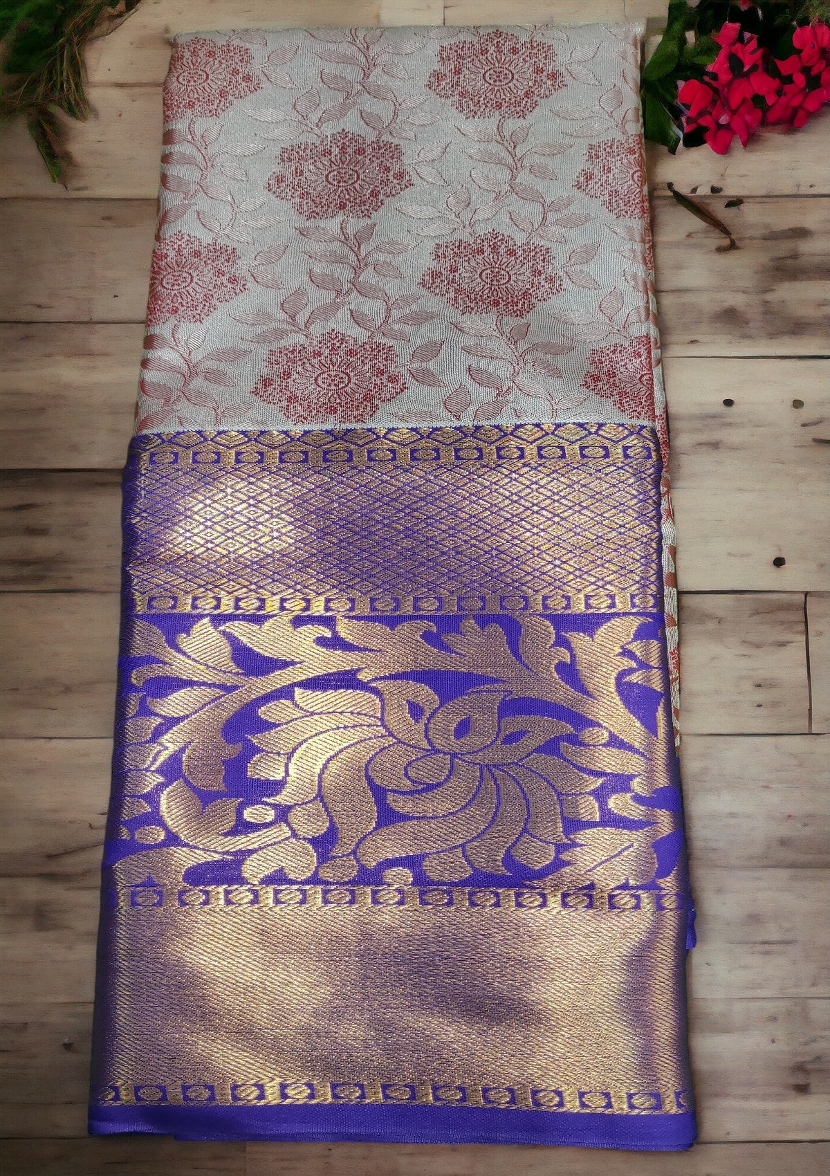 These sarees are crafted from high-quality silk fabric, known for its smooth texture and lustrous sheen. The silk used in Silver Kadiyal Pattu sarees is of superior quality, ensuring durability and elegance.