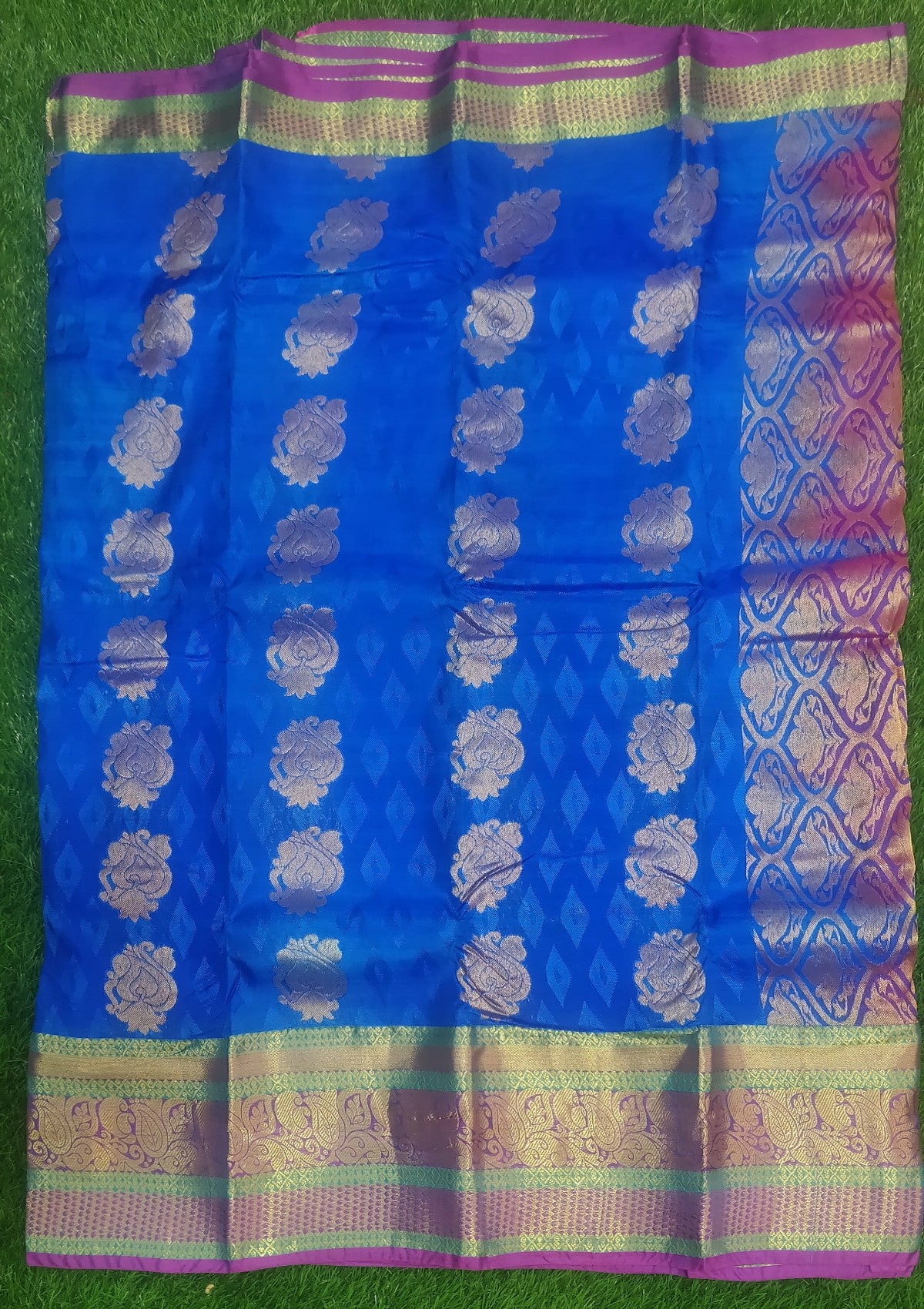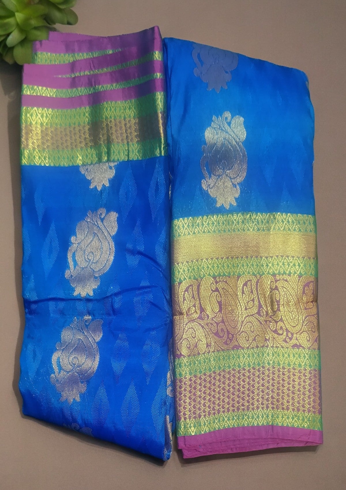 This silk saree is an elegant and vibrant piece, featuring a striking combination of colors and intricate detailing. Made from high-quality silk, known for its smooth texture and natural sheen, ensuring a luxuriate Pallu of the saree continues the theme with the same gold detailing, ensuring that the design flows seamlessly and looks cohesive when draped.us and comfortable drape.